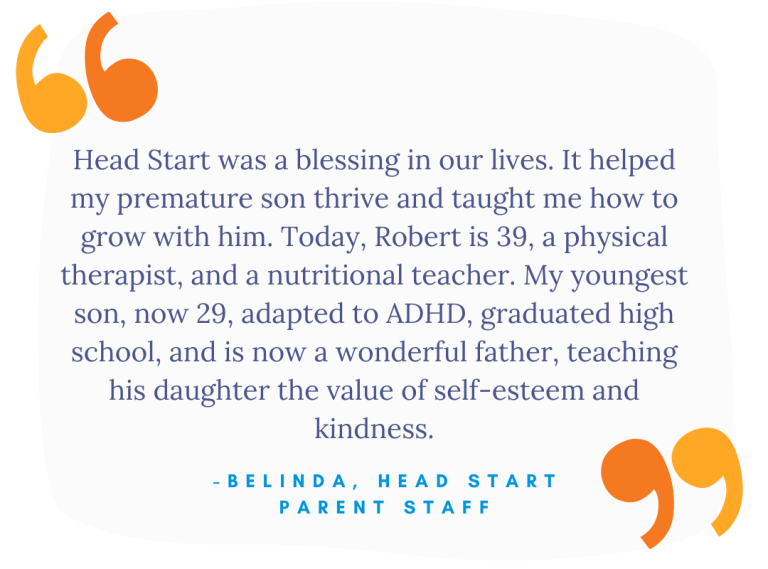 Head Start was a blessing in our lives. It helped my premature son thrive and taught me how to grow with him. Today, Robert is 39, a physical therapist, and a nutritional teacher. My youngest son, now 29, adapted to ADHD, graduated high school, and is now a wonderful father, teaching his daughter the value of self-esteem and kindness.