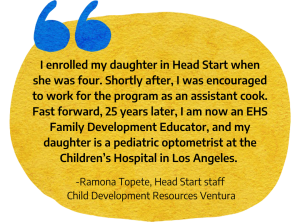 Many thanks to Ramona for sharing your Head Start story and to Child Development Resources for allowing us to republish it.