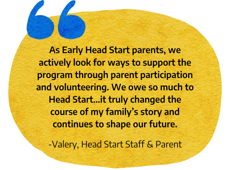As Early Head Start parents, we actively look for ways to support the program through parent participation and volunteering. My husband is proudly the classroom Policy Council Representative.